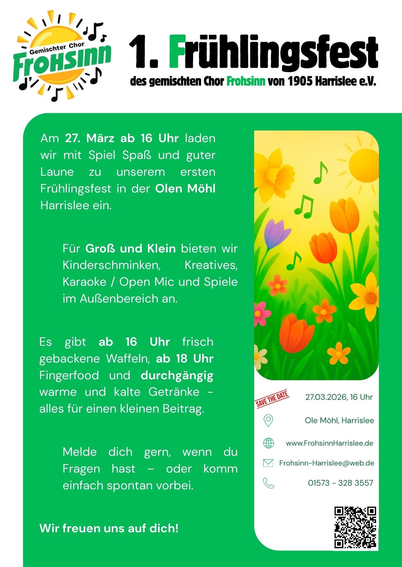 der Frühling ist da – und mit ihm eine wunderbare Gelegenheit, gemeinsam zu feiern und die Schönheit der Saison zu genießen. Der Chor Frohsinn lädt dich und deine Lieben herzlich zu unserem ersten Frühlingsfest ein!